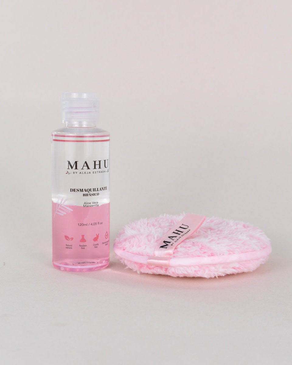 Kit desmaquillante MAHU By Aleja Estrada, este set incluye dos productos esenciales para desmaquillarte de manera profunda y efectiva.