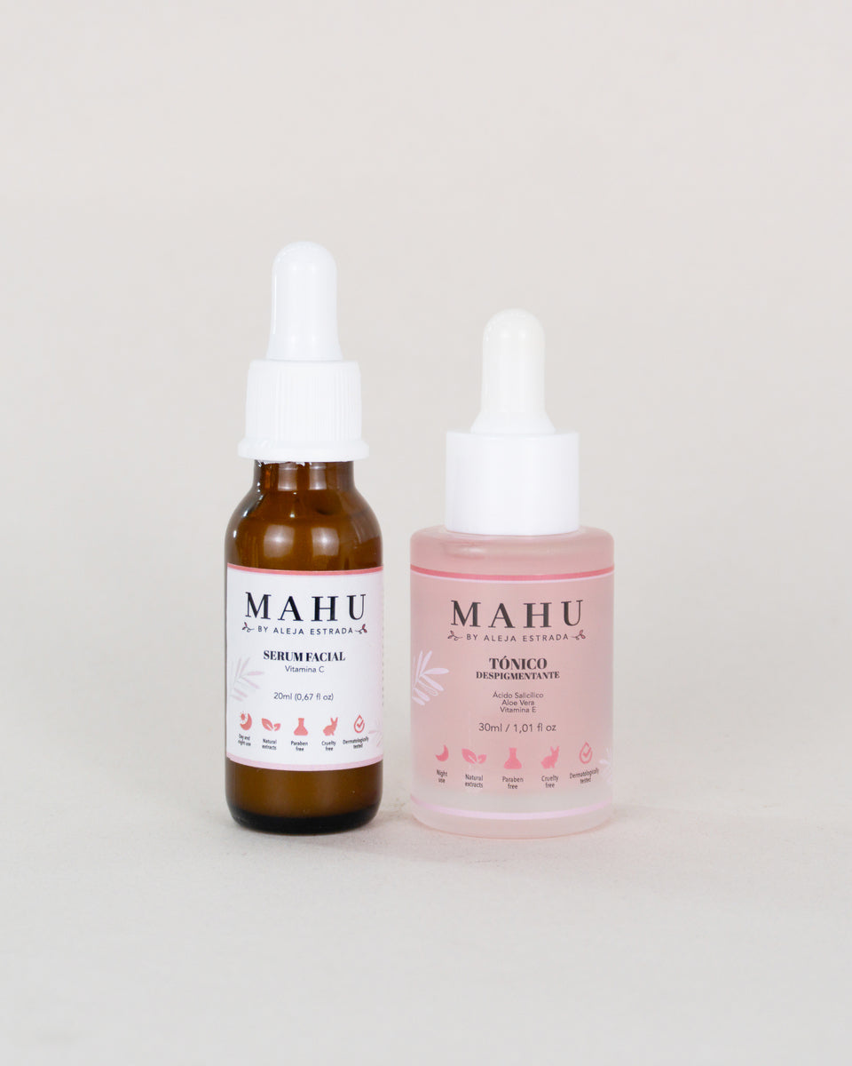 Kit Despigmentante MAHU By Aleja Estrada, está diseñado para combatir eficazmente las manchas y unificar el tono de la piel, brindándole una apariencia más luminosa y saludable.