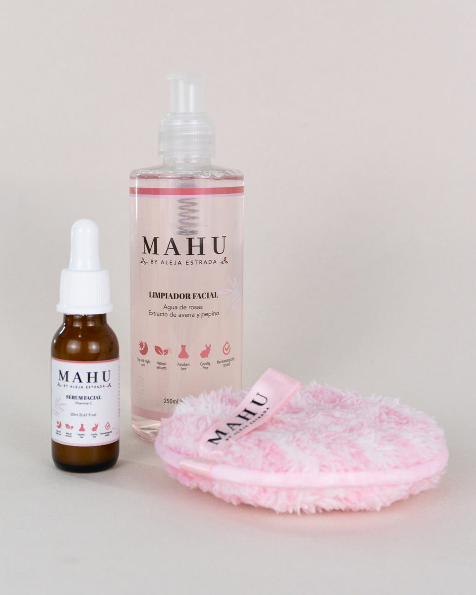 Kit Esencial MAHU By Aleja Estrada, está diseñado para brindarte una rutina de cuidado facial completa y efectiva. Este set incluye tres productos fundamentales que trabajan en sinergia para limpiar, hidratar y proteger tu piel diariamente.