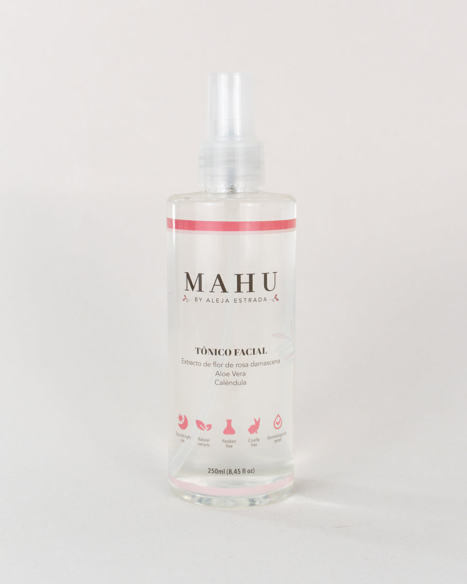 Si buscas una opción que no solo refresque, sino que también haga maravillas por tu piel, el tónico facial MAHU es lo que necesitas. Con su fórmula cuidadosamente desarrollada, este tónico no solo equilibra el pH de tu piel, sino que está enriquecido con ingredientes hidratantes y antioxidantes que mejoran la textura, luminosidad y salud de tu rostro.